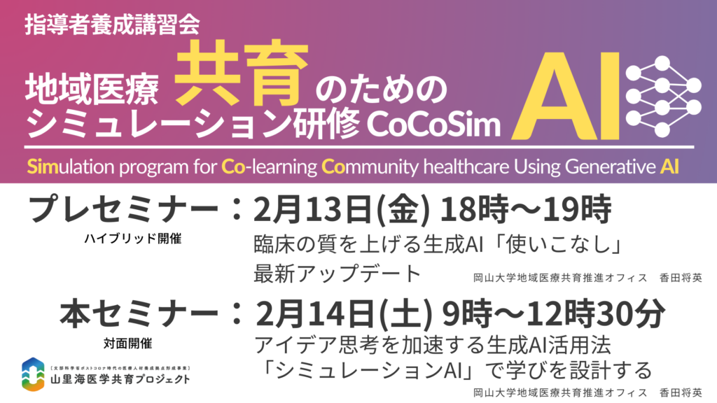 【2/13, 14】生成AIを活用した地域医療共育のためのシミュレーション研修
